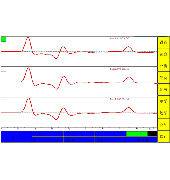 高應(yīng)變?cè)囼?yàn)成功的關(guān)鍵是信號(hào)質(zhì)量以及信號(hào)中的信息量是否充分。所以應(yīng)根據(jù)每錘信號(hào)質(zhì)量以及動(dòng)位移、貫入度和大致的土阻力發(fā)揮情況,初步判別采集到的信號(hào)是否滿(mǎn)足檢測(cè)目的要求。同時(shí)也要根據(jù)樁身的拉、壓應(yīng)力和缺陷程度大小,以決定是否進(jìn)一步錘擊試驗(yàn),以免樁頭或樁身受損。